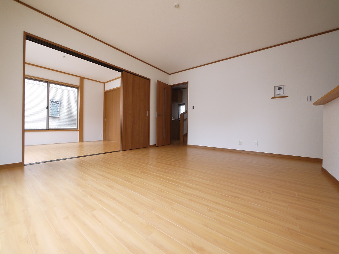 隣り合う洋室を開放すれば、ひときわ広々とした空間になるリビングダイニング。
